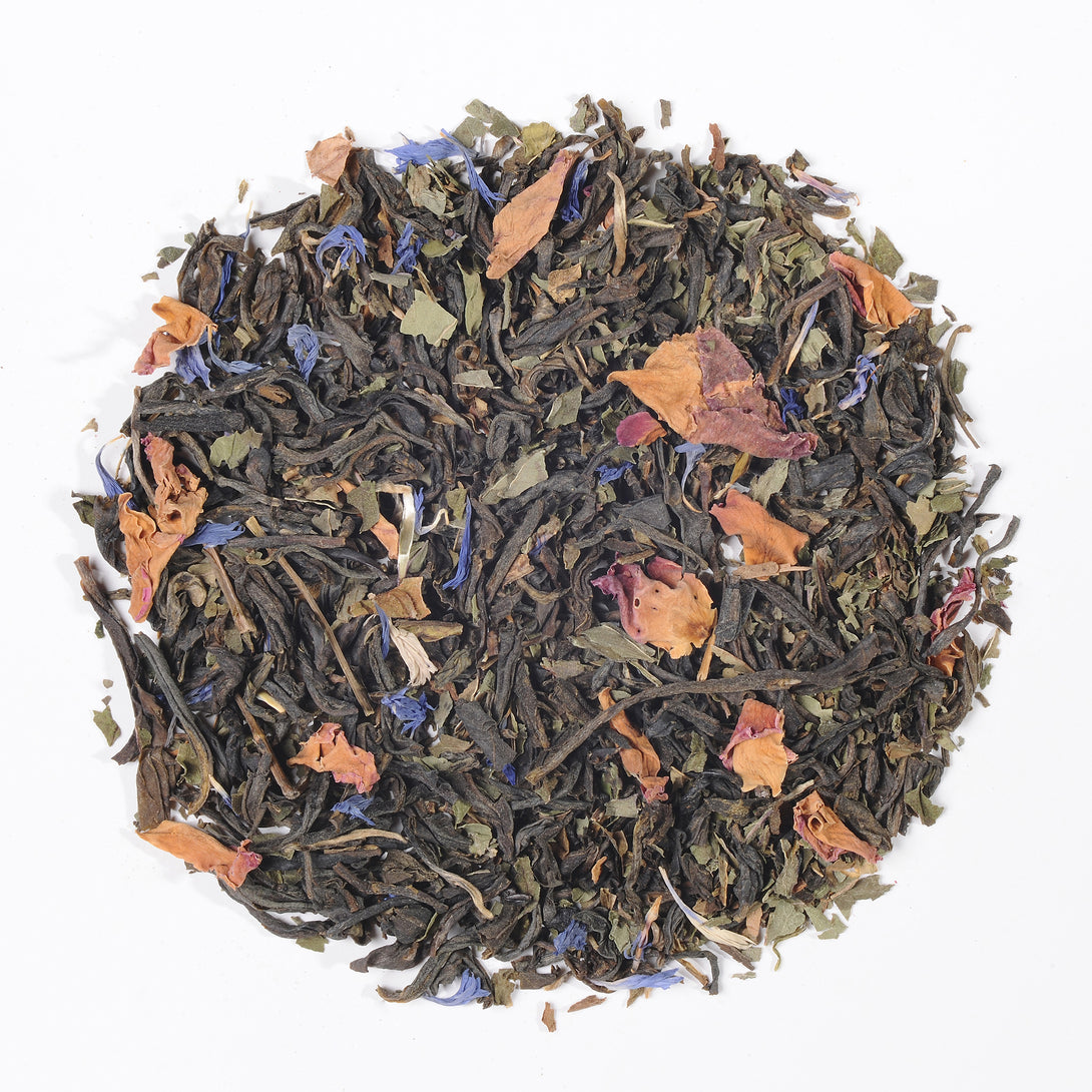 Delicate rose buds lend a floral elegance, while striking cornflower petals add a touch of visual charm, making every cup a feast for the senses. Perfect for unwinding after a long day or sharing a moment of calm, this blend offers a balance of freshness and warmth that transports you to sunlit Moroccan gardens with every sip.